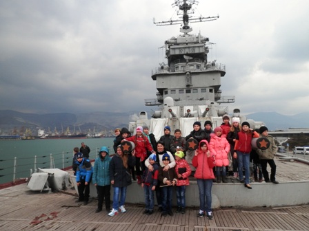 Мы посетили огромный военный корабль-крейсер «Кутузов». Я в первый раз в жизни была на корабле! Он был такой большой , что мы казались по сравнению с ним ,маленькими человечками .Его каюты с различными приборами произвели на меня большое впечатление . А большие военные пушки , которые мы увидели на палубе, когда-то своими залпами защищали нашу Родину от врага.